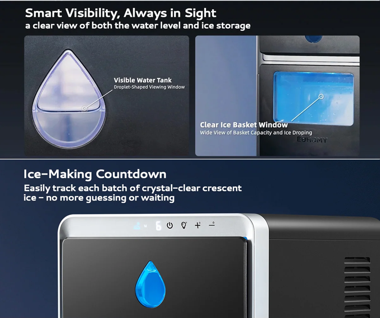 Or, purchase the Euhomy LunaArc Crescent Ice Maker on Amazon!