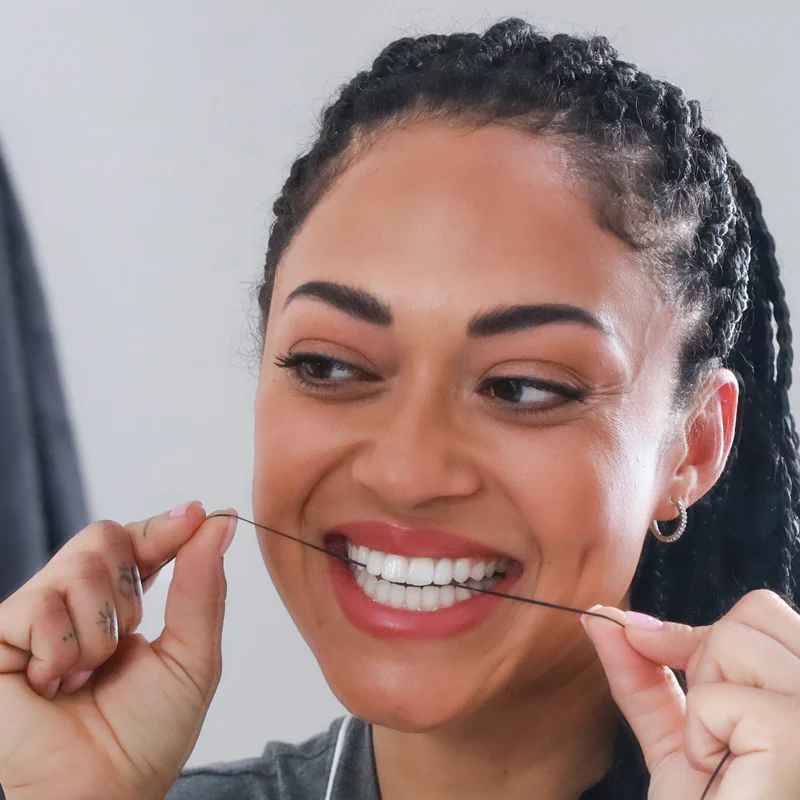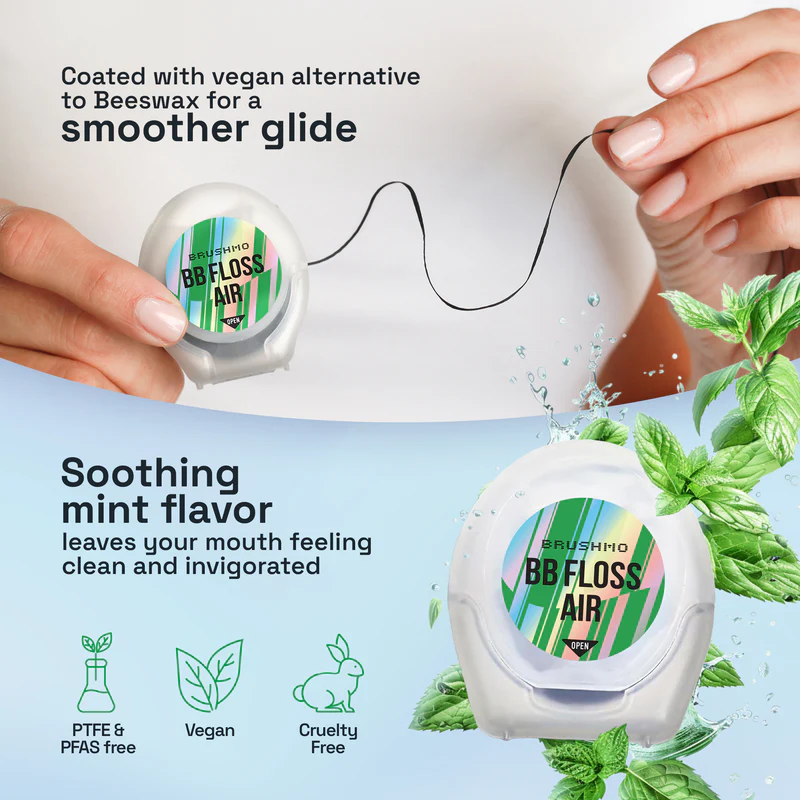 Designed by a dentist for superior plaque removal and maximum comfort. Brushmo Black Floss AIR is the lighter, gentler version of their signature BB Floss, designed for tight spaces, smaller mouths, and anyone who wants a thorough clean without feeling like they have to force it.