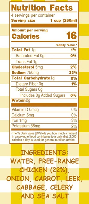 Made in Barcelona, Spain, it uses free-range chicken, fresh vegetables (like onion, carrot, leek, and celery), water, and sea salt, and is simmered for over three hours—a process that mirrors how a chef or home cook would make it from scratch.