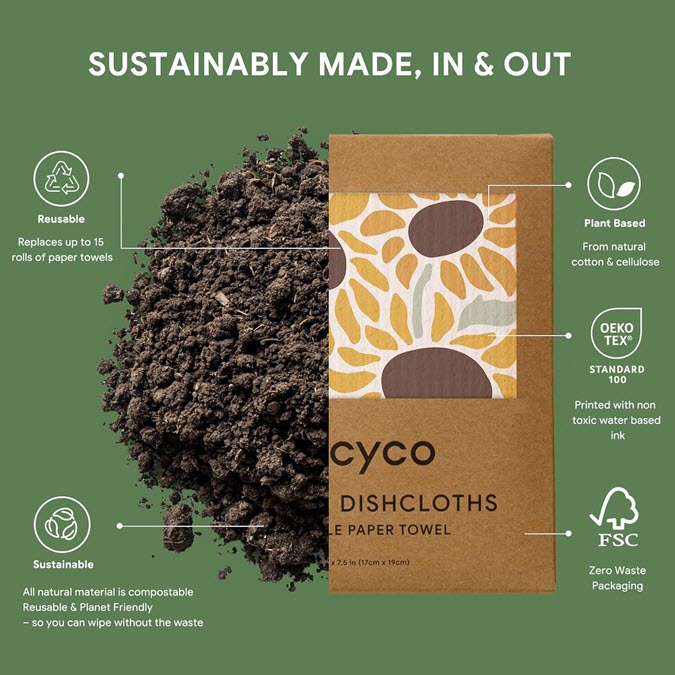 Of course, these RECYCO Swedish Dishcloths are Plant-Based & Biodegradable, which is another reason to love them. These 8″ x 7″ Swedish dishcloths are 100% biodegradable, vegan, and free from harmful chemicals.