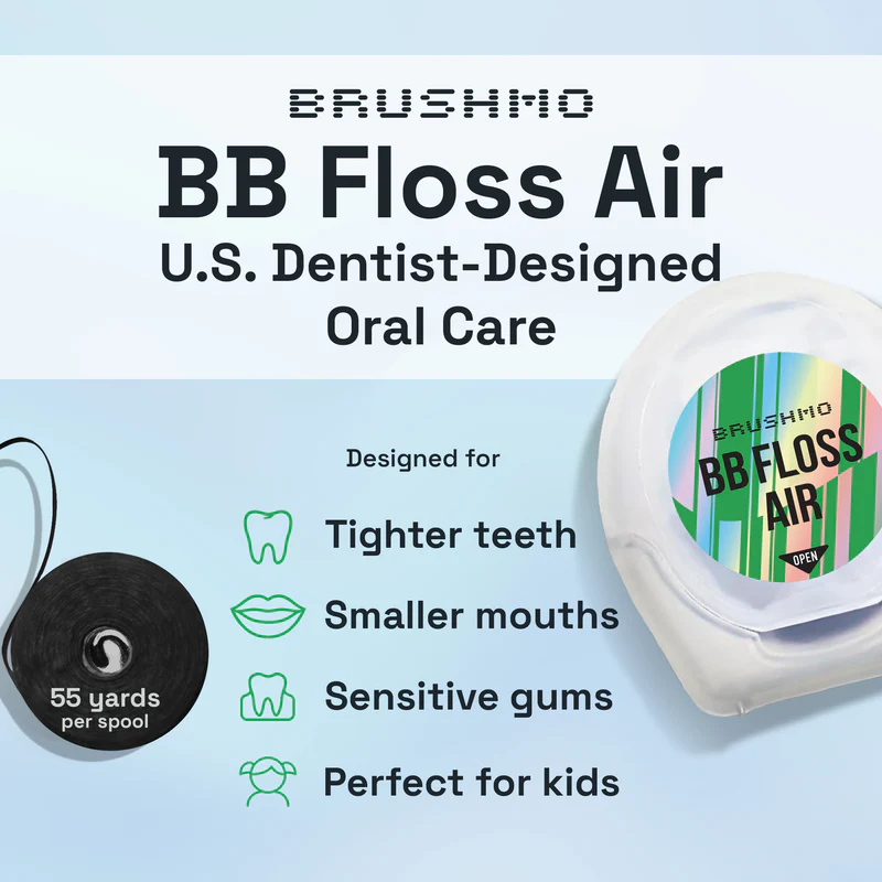- A Smoother Flossing Experience: Created by a U.S dentist to deliver powerful plaque removal with maximum comfort. BBFloss Air is the thinner version of our cult-favorite expanding BB Floss, designed for tighter teeth, smaller mouths, and sensitive gums.