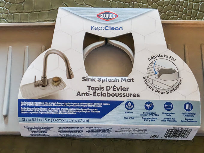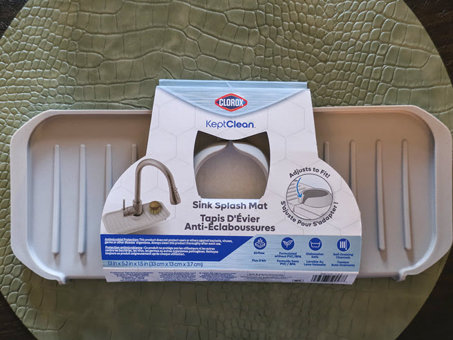 For those of you who are looking for affordable gifts, this Clorox KeptClean Kitchen Faucet Splash Guard is it! Of course, I got one for myself, too, because it works like a charm at keeping the area around my faucet dry.