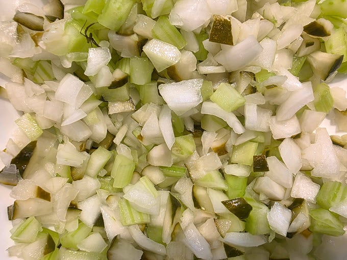 - 1 Small Pickle, Finely Chopped – You can use one larger pickle, depending on how much you like pickles.