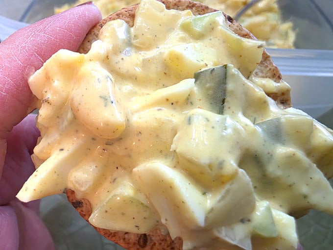 We hope you try this, the Best Egg Salad Recipe with a Secret Ingredient. It’s perfectly delicious, I promise. Of course, don’t attempt to freeze this salad as the texture changes. Instead, just put it in the fridge where it will last for several days and still taste delicious.