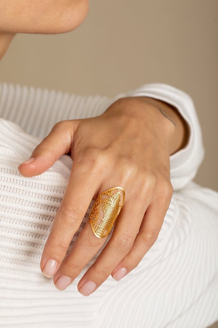 Additionally, she states, “There has always been a faraway place to miss, and traveling is a big part of my life.” And she has a studio in Tel Aviv where she uses a mix of technology and design in all her creations. Yet, she wanted to keep a personal touch in each piece she created, and she did that perfectly. For example, using a jewelry map to tell a story about a particular destination or location is brilliant!