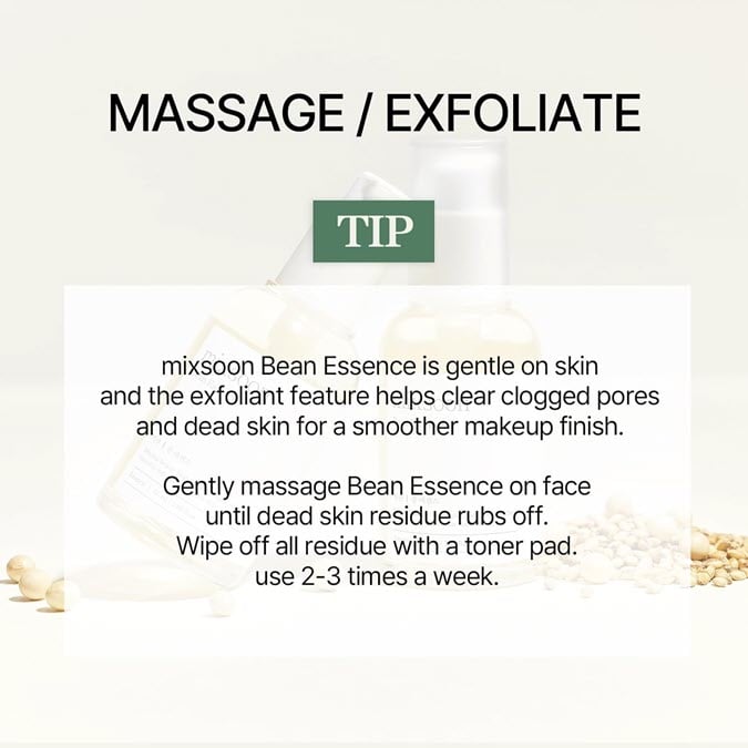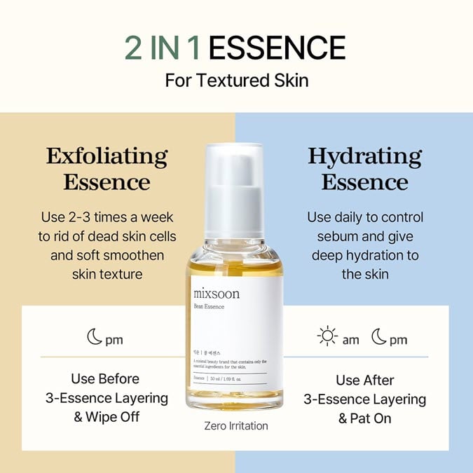 Bean Essence is a gentle essence with zero skin irritation, best for exfoliating and hydrating textured skin for a smoother, luminous complexion.