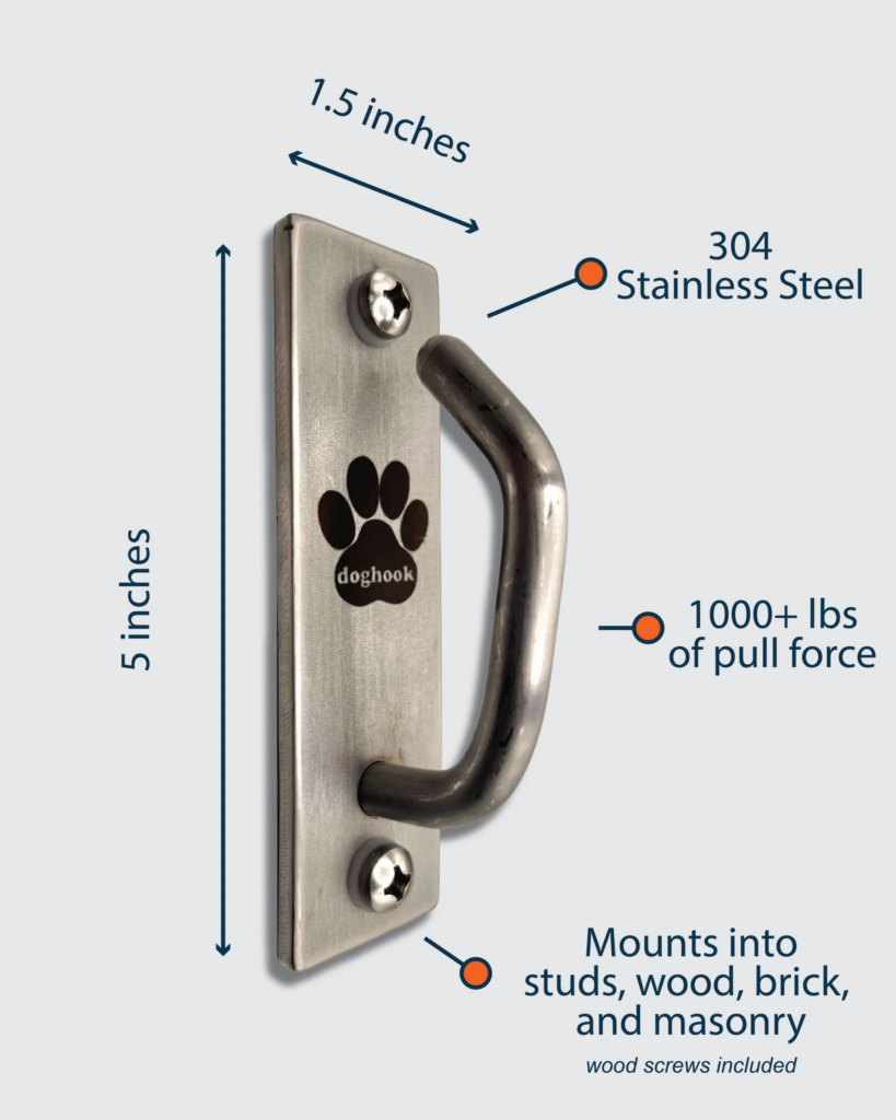 Now, you can experience a new level of versatility from grooming to playtime to chores. Ideally, this dog wall hook simplifies life with your four-legged companion both indoors and outdoors. It’s a game-changer for my dog, Olliver, as he can now romp safely and securely in my backyard. I also love using it when I give him a bath outdoors. He loves it too!