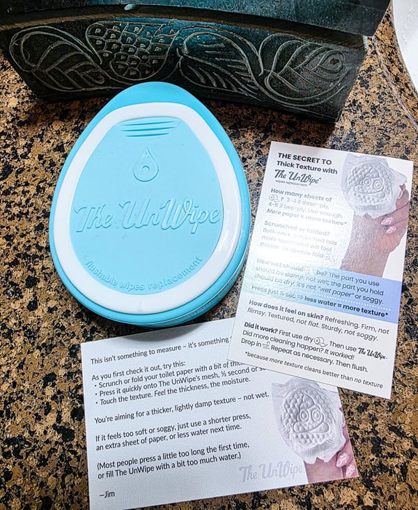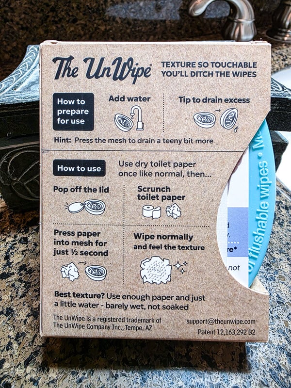 So, that is The UnWipe? Well, it’s the anti-wipes, and they give any toilet paper the texture wipes can’t begin to match. Of course, you can flush them safely, so no worries about your septic system.