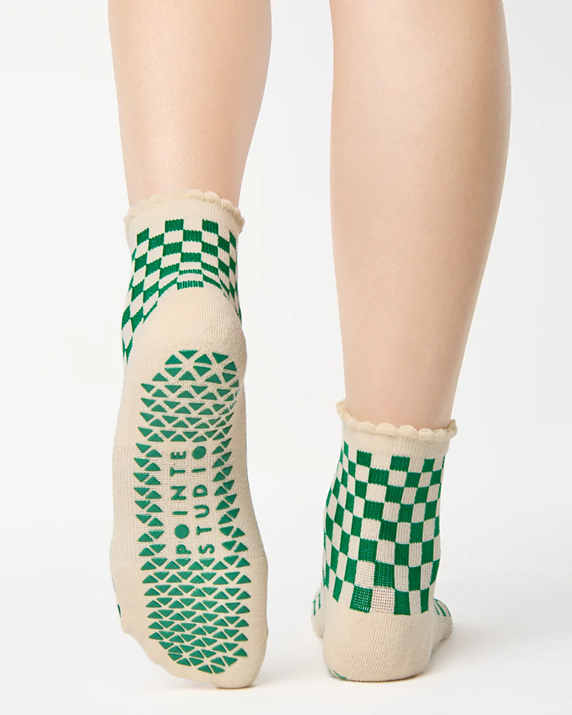 Of course, I had to have these Annie Ankle Grip Socks and often replace wearing slippers because of their grip and comfort. I love the a small checkered print around the sock and a scalloped cuff. Plus, these socks offer no-slip grips and comfort for every step. With compression arch support, they’re perfect for Pilates, barre, yoga, and everyday activities, combining style and function seamlessly.