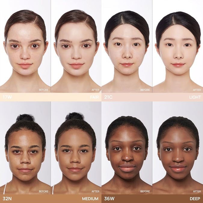 Furthermore, you’ll see 20 expertly calibrated shades for fair to deep skin tones. Each shade blends seamlessly with your undertone to create a bright, natural-looking complexion. And they do this without oxidizing or turning dull throughout the day.