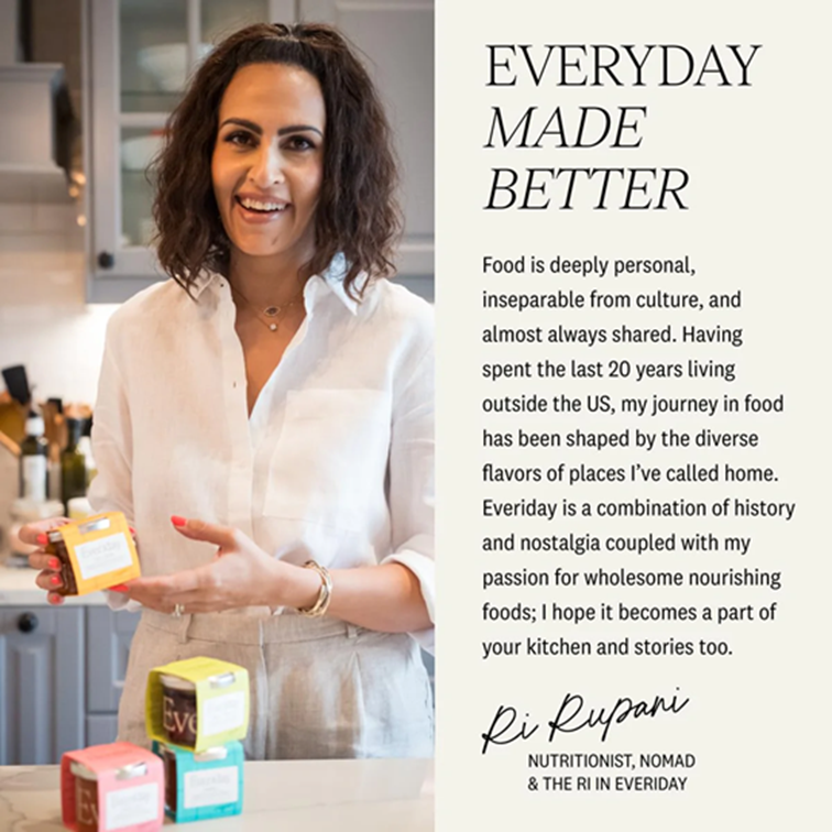 Everiday Foods Ultimate Everiday Spice Arsenal comes in four sustainable glass jars and metal lids—fully recyclable, maximizing your planet-friendly flavor impact. You can try them on anything!