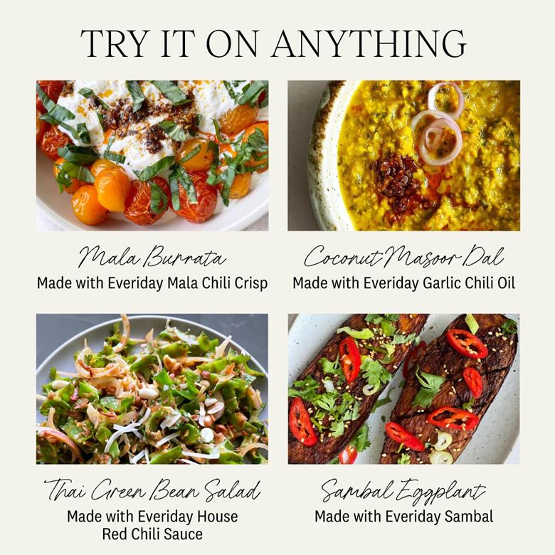 From Mala Chili Oil’s tingly spice to Garlic Chili Oil’s garlicky punch, Red Chili Sauce’s citrus tang, and Sambal Chili Sauce’s earthy umami, this complete set equips you for every craving. Ideal for health-conscious pros ready to elevate meals endlessly. So, be sure to dive in and save on the ultimate clean-heat collection.