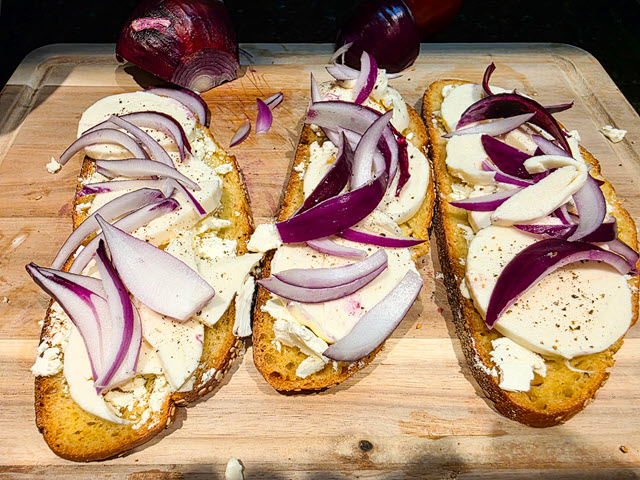 Layer slices of onion on top of the cheese