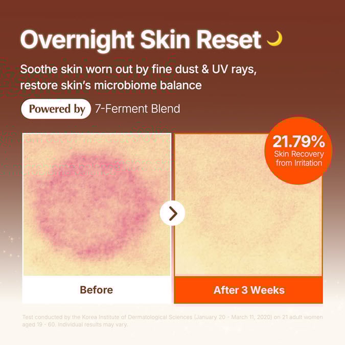 Now, your skin can experience an overnight reset with Bifida Biome Complex Ampoule. It features a 7-Ferment Blend that helps soothe skin worn out by fine dust and UV rays while you sleep. It helps balance the skin’s microbiome, promoting a stronger, smoother, and more resilient skin barrier.