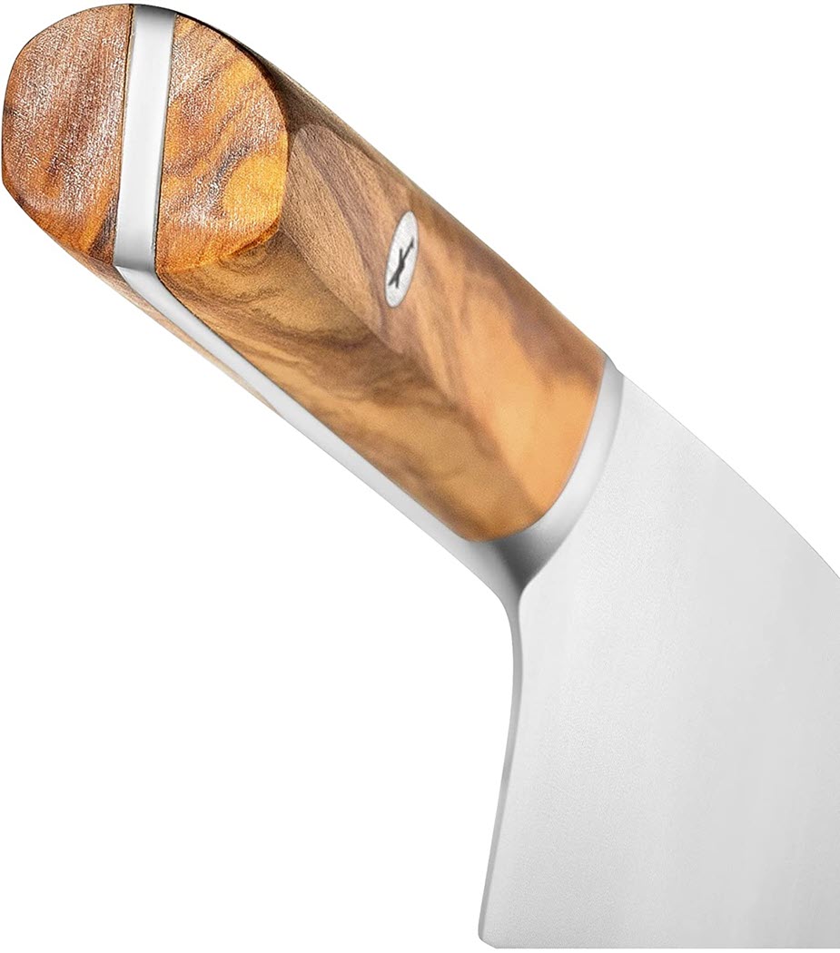 It’s important to note that you should handwash Cutluxe knives. You never want to place them in the dishwashers. Doing so can ruin the carefully crafted wax-injected olive wood handle. Plus, they will last you for years and years with some gentle care. This knife is very sharp and stays that way too.